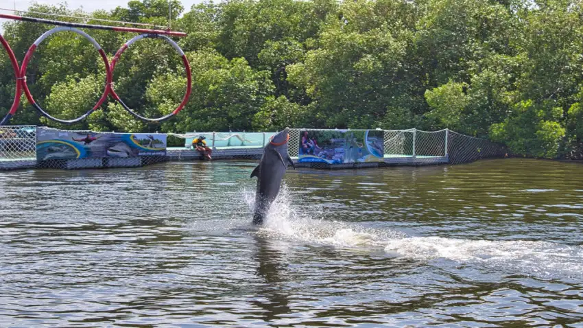 Un sitio muy especial con facilidades de disfrute para grandes y chicos. En esta laguna costera de aproximadamente 60 000 m3 se preservan las condiciones naturales de su flora y fauna. Aquí conviven delfines de la especie Tursiops trucatus o Delfín Nariz de Botella. El visitante puede vivir la singular experiencia de bañarse junto a ellos. Entre sus facilidades ofrece show y baño con delfines, parque infantil, servicio de fotografía y video, tiendas de artesanías y souvenirs y servicios de snack bar.